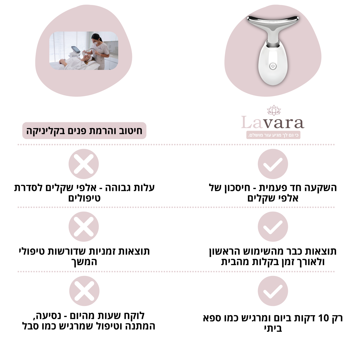 תפסיקי לבזבז אלפי שקלים כל חודש על טיפולים בקליניקות יוקרה שמבטיחות תוצאות זמניות. אחרי רכישה אחת של ה-™Lavalift, תוכלי להעניק לעצמך טיפול ברמה מקצועית מהבית, מתי שאת רוצה.